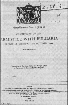 страница на документа "Условия за Примирие с България", издаден в Лондон