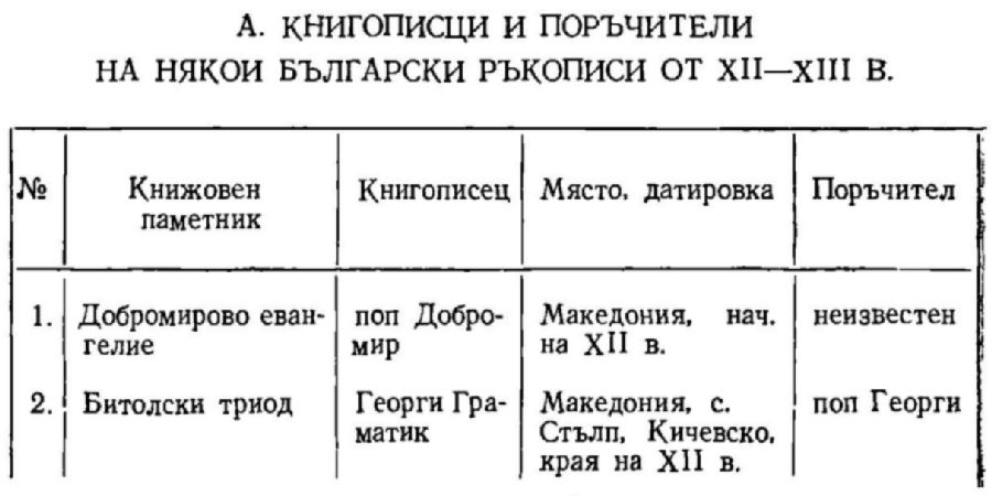 А. КНИГОПИСЦИ И ПОРЪЧИТЕЛИ НА НЯКОИ БЪЛГАРСКИ РЪКОПИСИ ОТ XII—XIII В.