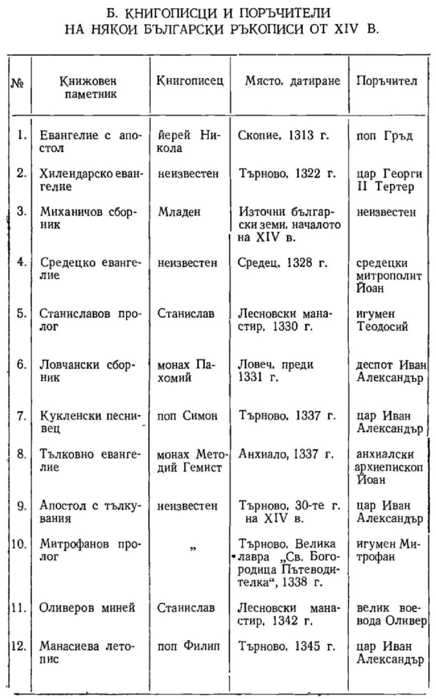 Б. КНИГОПИСЦИ И ПОРЪЧИТЕЛИ НА НЯКОИ БЪЛГАРСКИ РЪКОПИСИ ОТ XIV В.