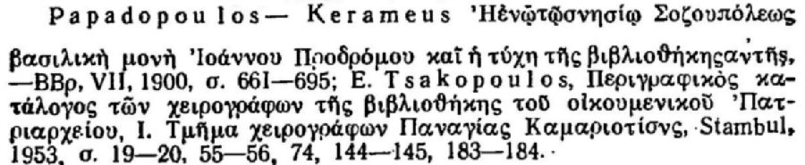 И. Э. Гpанстpем, Два неопубликованных средневековых каталога. — В: Элинистический Ближний Восток, Византия и Иран, М., 1967;