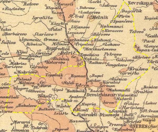 Нашитѣ изчисления за тая каза, правени прѣзъ 1890 г., [1] даватъ общо число на населението почти толкова, колкото е тукъ, но числото на турското население тамъ е много намалено, а на българитѣ увеличено. Споредъ салнамето отъ 1303 год. въ Демиръ-Хисарската Каза има българи (българи и власи) 26 000, турци (турци, помаци и черкези) 13 810 и цигани 1 545, отъ които голѣмото мнозинство сѫ мухамедани. А салнамето отъ 1313 год. показва мухамедани (турци, помаци, черкези и цигани) 15 569 и немухамедани (българи и власи) 26 086. И тукъ се вижда ясно, че числата на новото салнаме сѫ вземени отъ много стари смѣтки и че чиновницитѣ по статистиката не се грижатъ да слѣдятъ растътъ на населението.