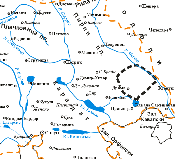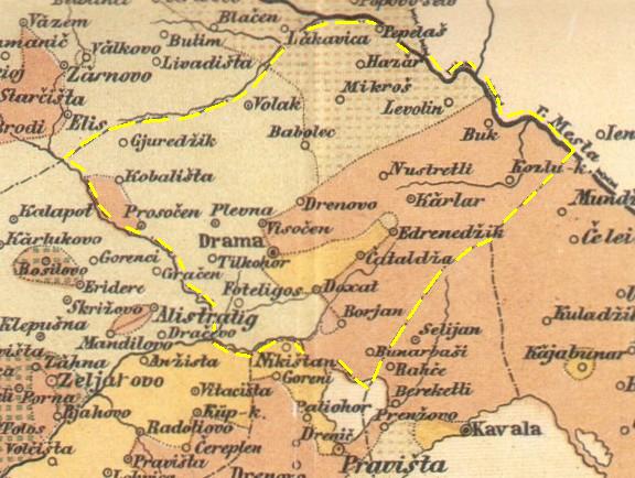 Селата, които се намиратъ на сѣвероизтокъ отъ Драма около пролома на Места, сѫ мѫчнодостѫпни за християни, пакъ и властьта нѣма голѣма сила въ оня край, за това числата, които се посочватъ за населението на тоя край, не сѫ много сигурни. Въ Верковичовата статистика тия села съвсѣмъ липсуватъ, а Z. ги е показалъ безъ да означава населението имъ [1], като е смѣсилъ при това Драмската Каза съ Правишката и съ Чечъ. Въ Драмската Каза влиза само часть отъ Чечъ.