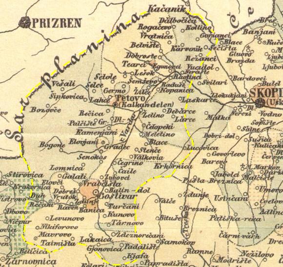 Споредъ вилаетското салнаме отъ 1311 год. въ Тетовската Каза има мухамедани (турци, арнаути, торбеши и цигани) 58 424 (мѫже 29 212, жени 29 212), българи (екзархисти) 19 660 (мѫже 9 830, жени 9 830), гръци (българи патриаршисти) 9 980 (4 990 мѫже, 4 990 жени), или всички българи съ арнаутитѣ християни 29 940. Отъ това се вижда, че числото на християнското население се схожда съ числата, които ние даваме. Увеличение на християнското население въ тая каза не се забѣлѣзва, поради силното изселванье отъ арнаутския натискъ. Колкото се касае до мухамеданското население, то е криво поставено въ официалния турски календаръ. Арнаутитѣ отъ тоя край, както и отъ съсѣднитѣ Призренски околии, се противятъ да даватъ войници, за това отъ арнаутскитѣ села се не даватъ и свѣдѣния на нофузнитѣ чиновници. Отъ тукъ слѣдва, че числото на арнаутитѣ е прѣсмѣтнато намѣрки.