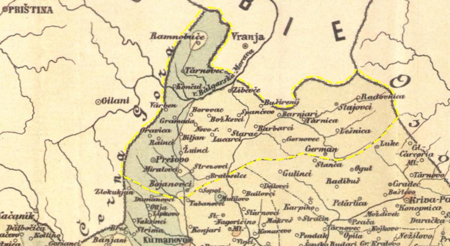 Прѣшовската Каза е съставена слѣдъ Берлинския Договоръ, когато Враня мина въ прѣдѣлитѣ на Сърбия. По-рано голѣма часть отъ селата на тая каза сѫ били подъ Враня. По тая причина Прѣшовската Каза не е поставена нито въ Верковичовата, нито въ Пловдивската статистика.