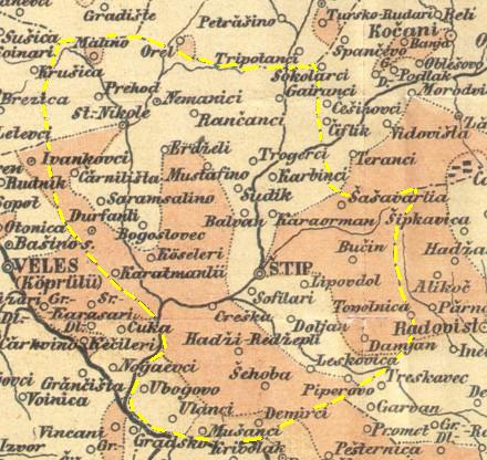 Както Верковичовата, така и Пловдивската статистика непосочватъ голѣмо число отъ турскитѣ села на тая каза. Изоставени сѫ имено всичкитѣ конярски села, които се намирать на западъ отъ Щипъ въ политѣ на Палачковица Планина.