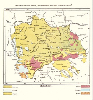 Ethnographical map of Macedonia according to Vassil Kanchov: