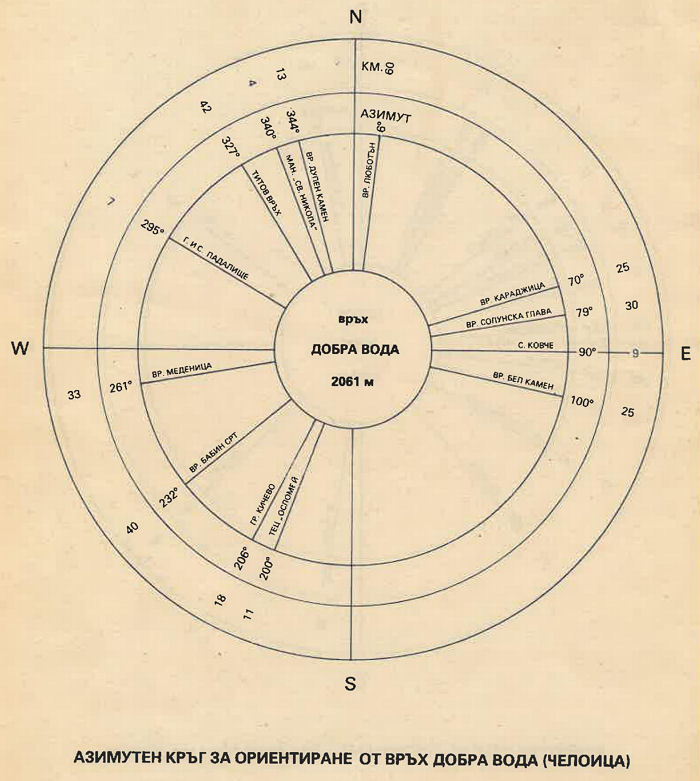 АЗИМУТЕН КРЪГ ЗА ОРИЕНТИРАНЕ ОТ ВРЪХ ДОБРА ВОДА (ЧЕЛОИЦА)