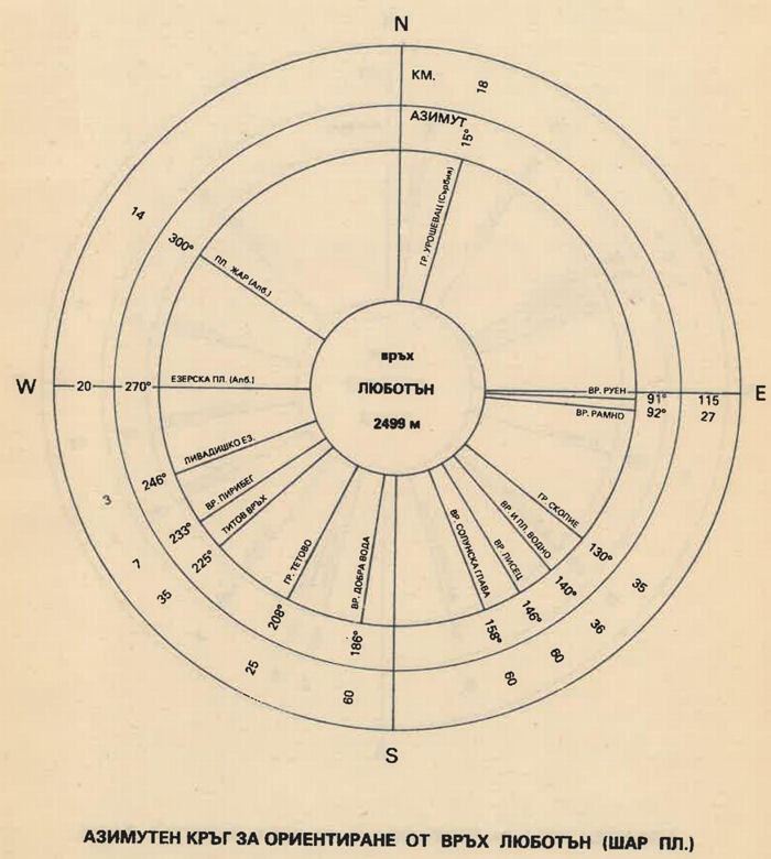 АЗИМУТЕН КРЪГ ЗА ОРИЕНТИРАНЕ ОТ ВРЪХ ЛЮБОТЪН (ШАР ПЛ.)
