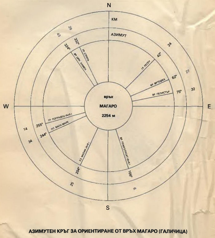 АЗИМУТЕН КРЪГ ЗА ОРИЕНТИРАНЕ ОТ ВРЪХ МАГАРО (ГАЛИЧИЦА)