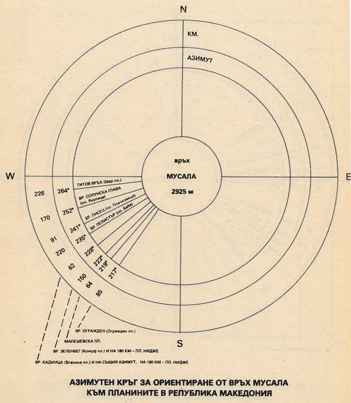 АЗИМУТЕН КРЪГ ЗА ОРИЕНТИРАНЕ ОТ ВРЪХ МУСАЛА КЪМ ПЛАНИНИТЕ В РЕПУБЛИКА МАКЕДОНИЯ