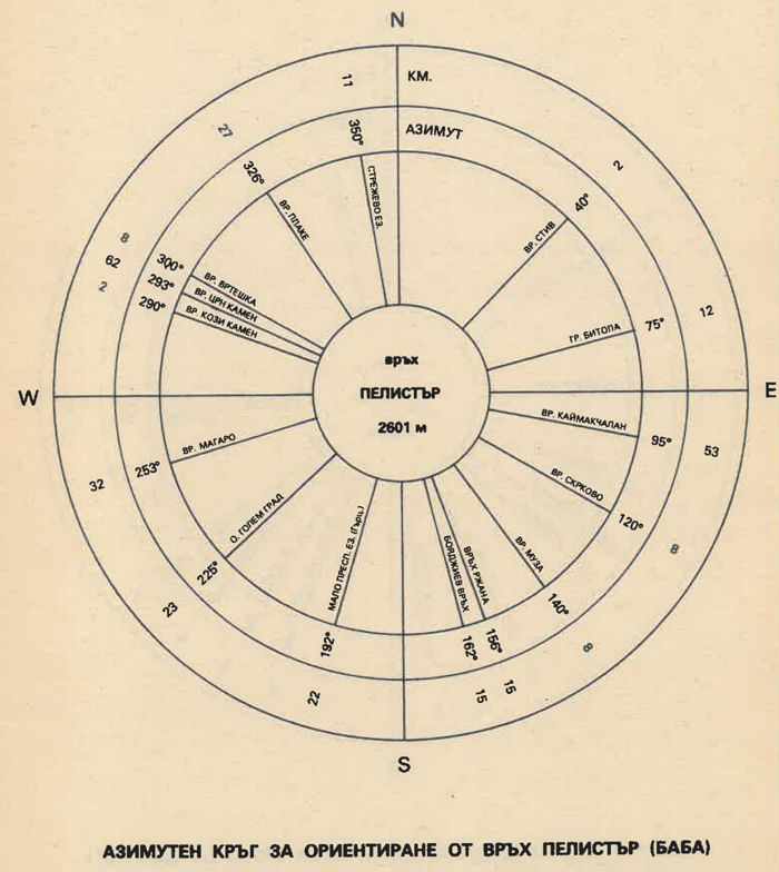 АЗИМУТЕН КРЪГ ЗА ОРИЕНТИРАНЕ ОТ ВРЪХ ПЕЛИСТЪР (БАБА)