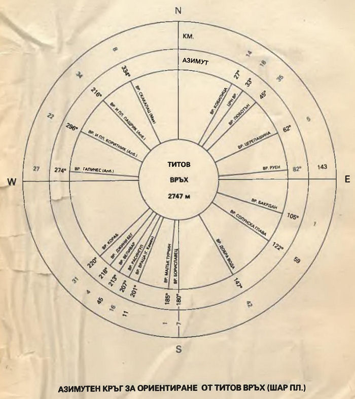 АЗИМУТЕН КРЪГ ЗА ОРИЕНТИРАНЕ ОТ ТИТОВ ВРЪХ (ШАР ПЛ.)