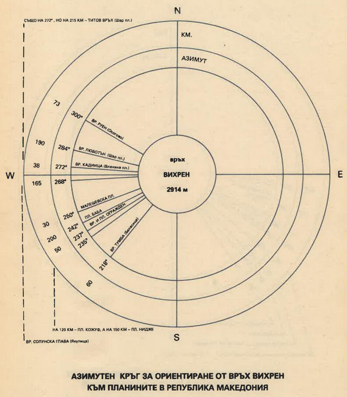 АЗИМУТЕН КРЪГ ЗА ОРИЕНТИРАНЕ ОТ ВРЪХ ВИХРЕН КЪМ ПЛАНИНИТЕ В РЕПУБЛИКА МАКЕДОНИЯ