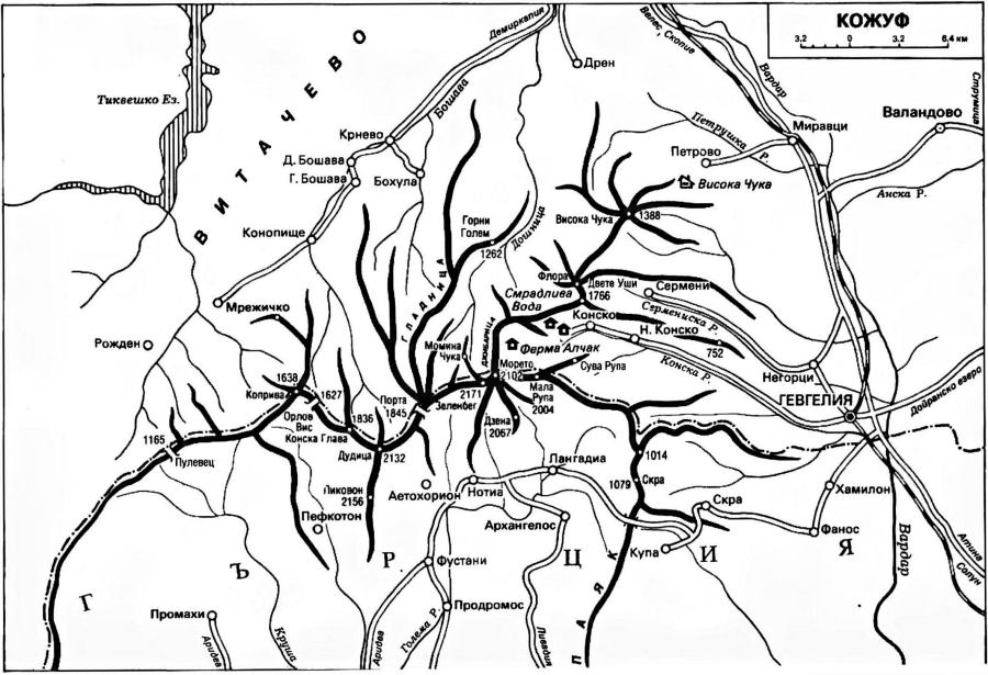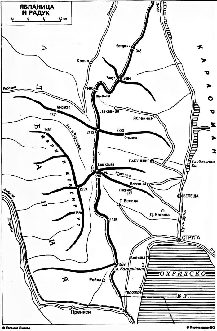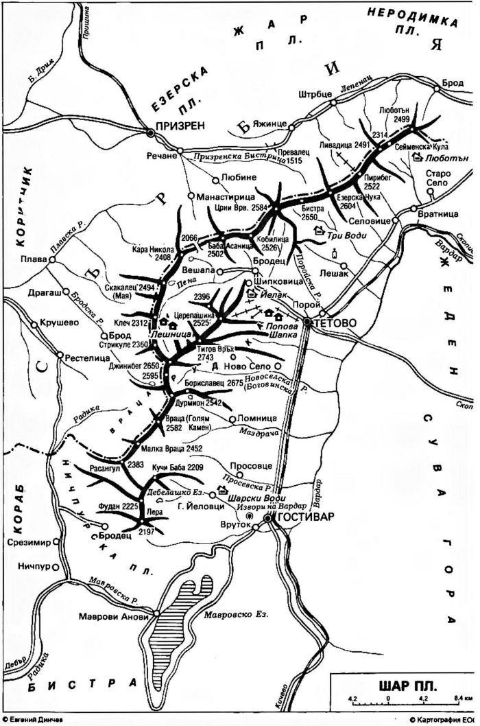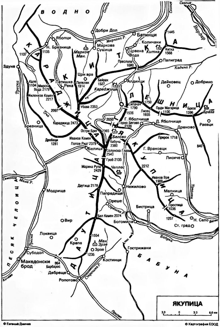 Кораб, Шар пл., Баба, Якупица, Нидже, Стогово и Караорман, Ябланица и Радук, Галичица, Осогово, Кожуф, Бистра, Челоица, Беласица
