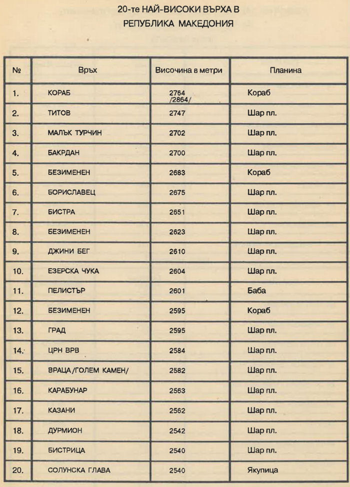 20-те НАЙ-ВИСОКИ ВЪРХА В РЕПУБЛИКА МАКЕДОНИЯ