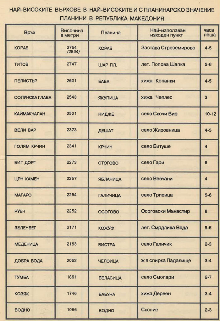 - Най-високите върхове в най-високите и с планинарско значение планини в Р Македония