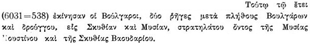 1. [Първите навлизания на прабългарите на Балканския полуостров като съюзници на Византия против остготите са станали през 480, 486/7 и 488 г. Уточнени данни за ранната история на прабългарите до края на V в. вж. у А. Бурмов, Въпроси из историята на прабългарите, ГСУ ифф, т. XLIV, кн. 2, София, 1948, стр. 3—13.]