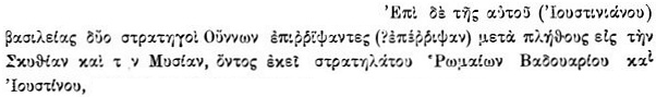 9. [He е вярно твърдението на В. Златарски, че във войската на Мундо имало българи. В същност българите са били негови противници и са се намирали във византийската войска, командувана от пълководеца Сабиниан (вж. А. Бурмов, Въпроси из историята на прабългарите, стр. 14—15).]