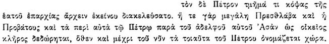 изтъква, че е братъ на Асѣня, Петъръ е нареченъ сѫщо „царь”, [1] което едвали